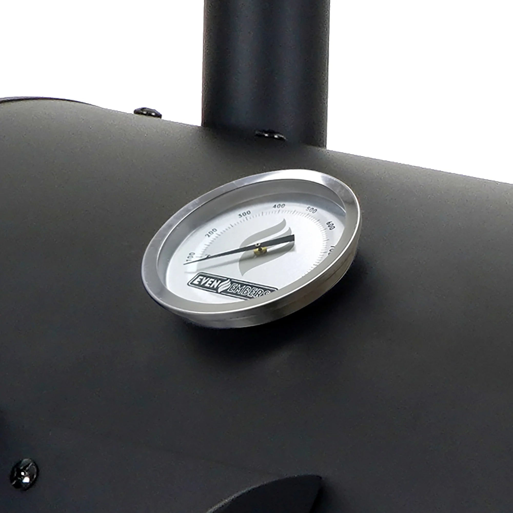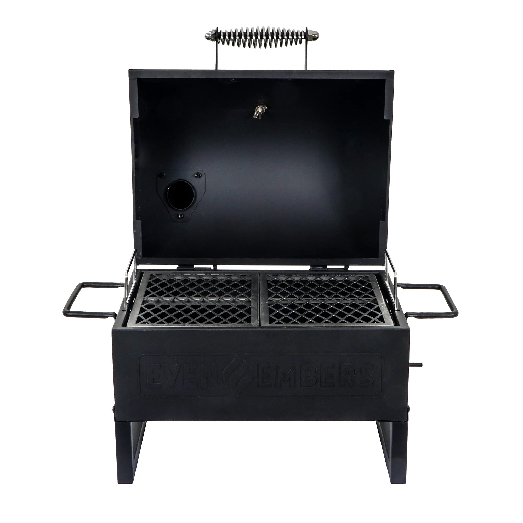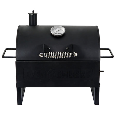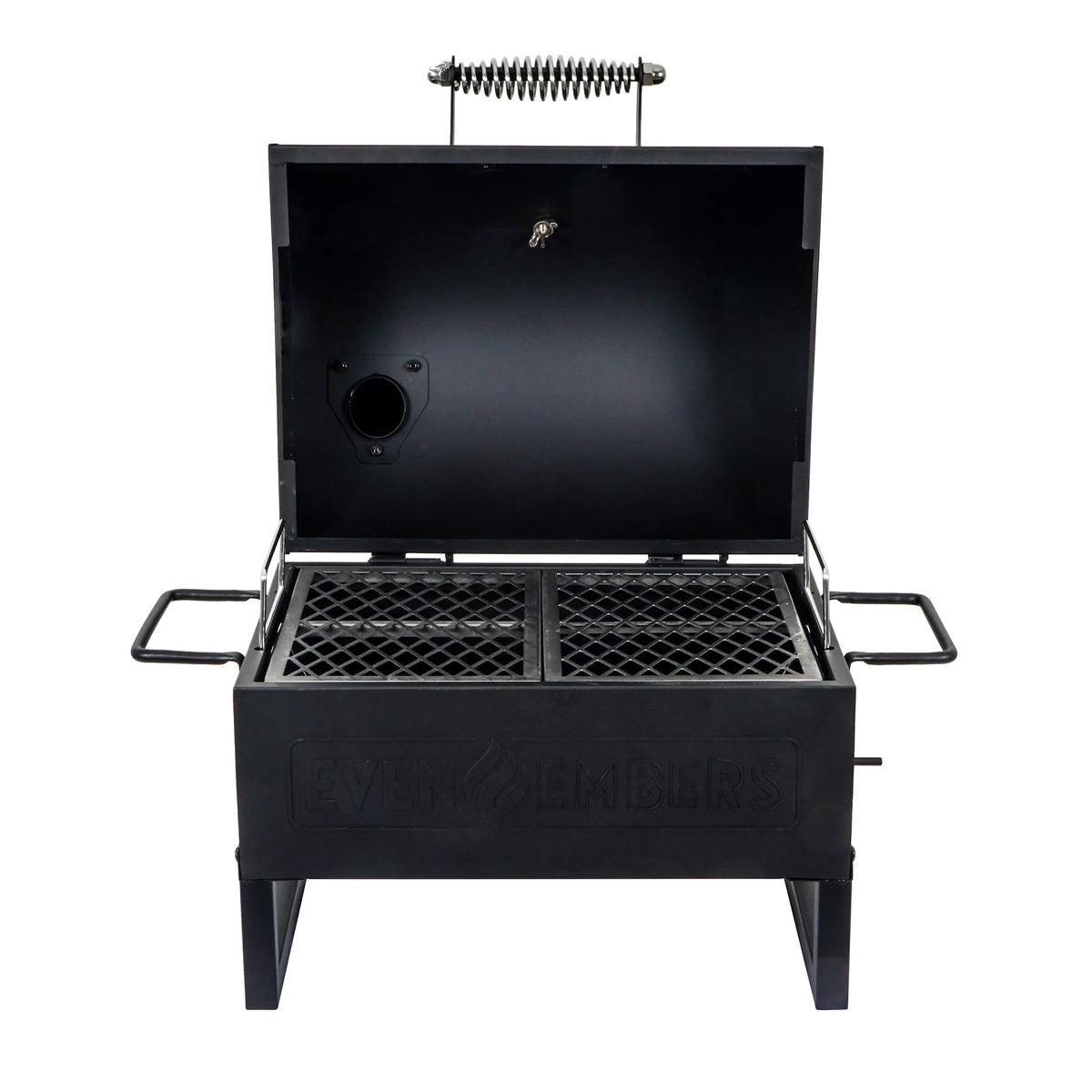 Compact, yet mighty, the Even Embers Tabletop Charcoal Grill offers 214 square inches of cooking space on heavy-duty pierced steel cooking grates. Cooking heat is in your control with an adjustable height charcoal grate, accessible air vent and easy to read temperature gauge. Side handles for portability make this Even Embers tabletop grill perfect for picnics on the go, camping, or backyard get-togethers.