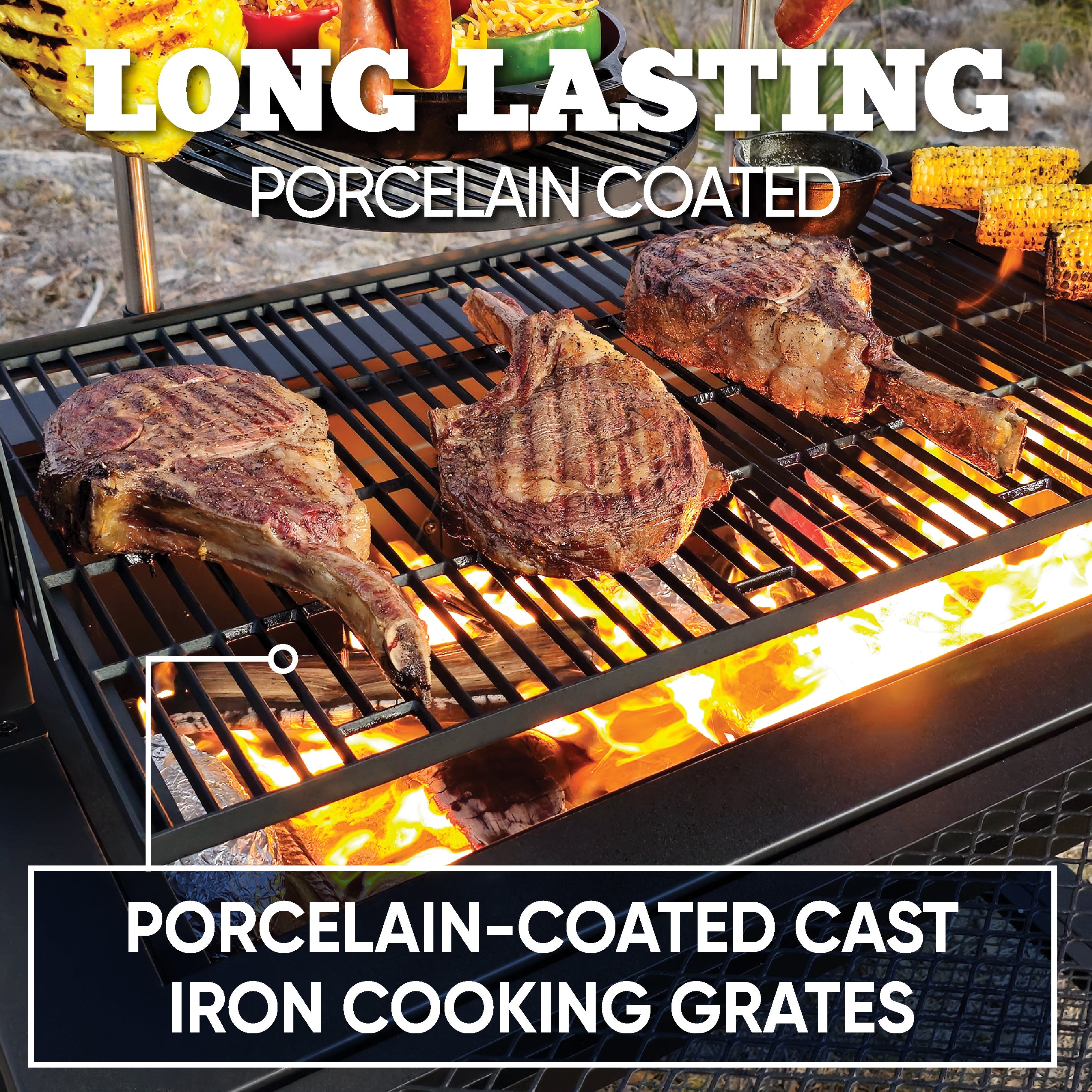 - Porcelain-coated cast iron grates: provide even heat distribution and easy cleaning
